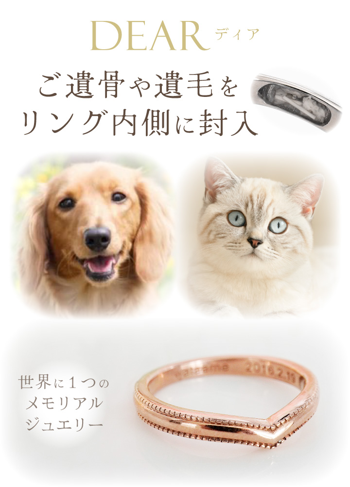 誕生石・名入れ無料。ディアペットオリジナルの遺骨ジュエリーです。シンプルで美しい見た目なので身に着けやすく、特別な日も、ふとした日常も、いつでもどこでもそばにいられます。