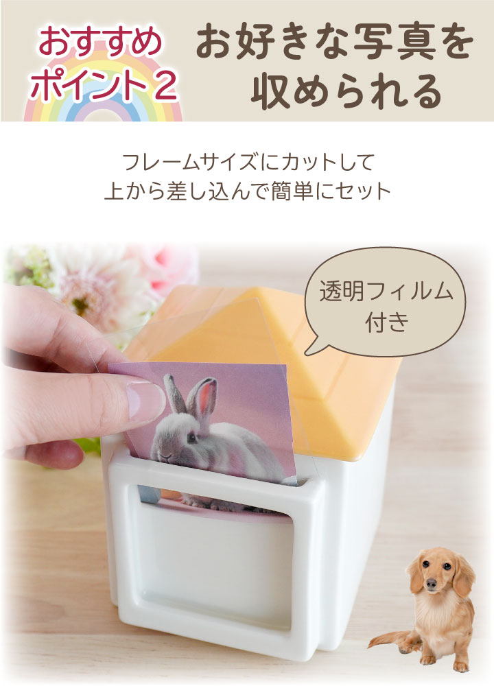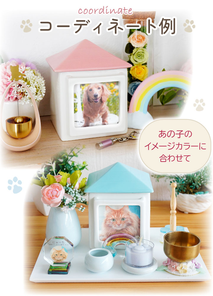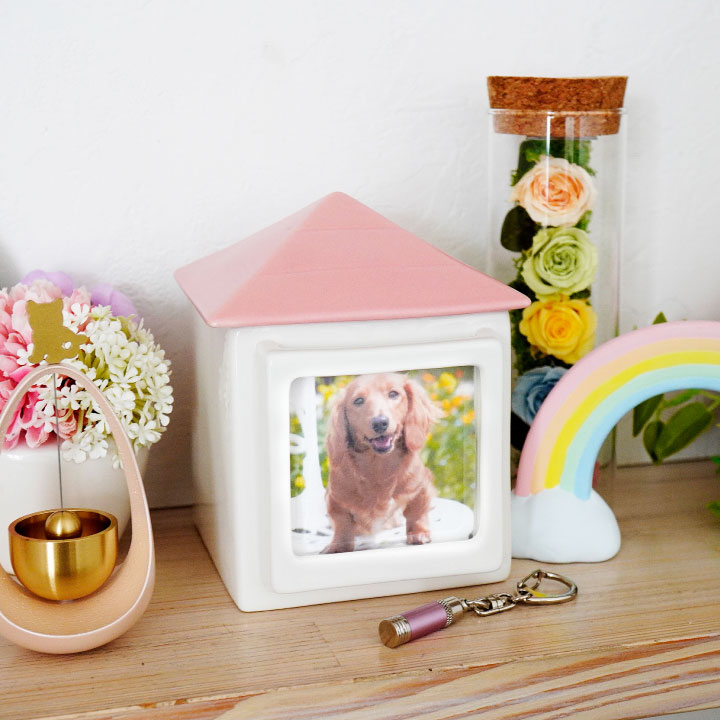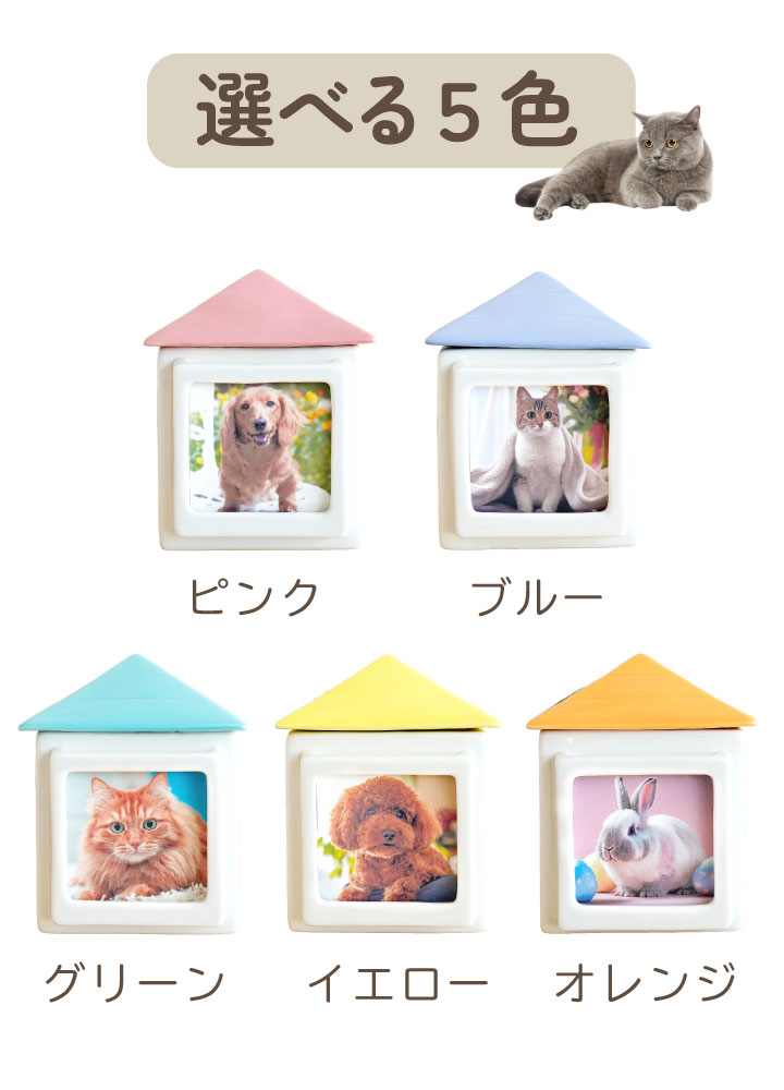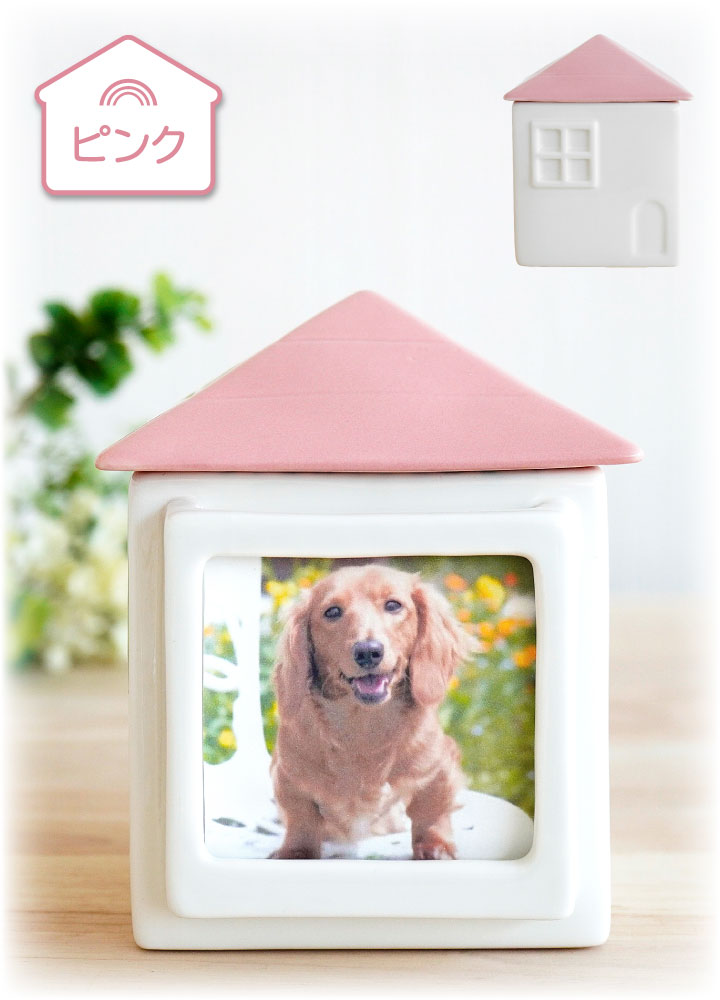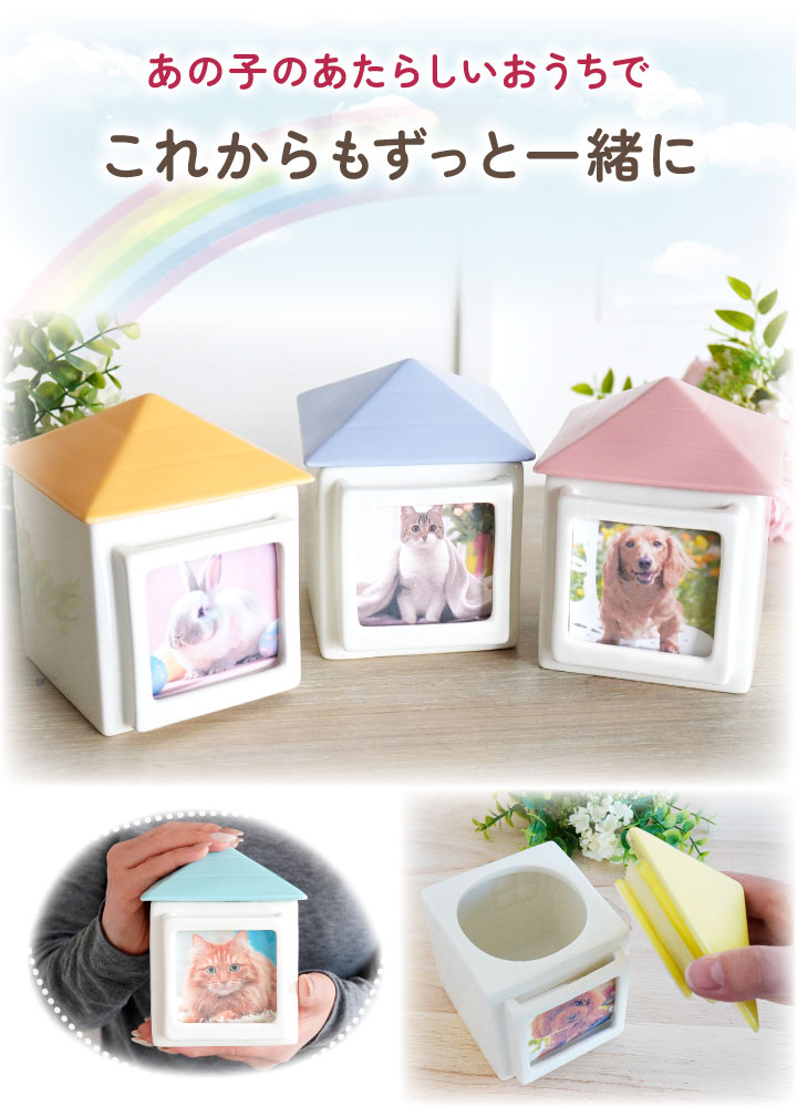 おうちの形をした心和むパステルカラーのかわいいミニ骨壷です。蓋にシリコンが付いているので、万一倒れてしまっても安心です。
