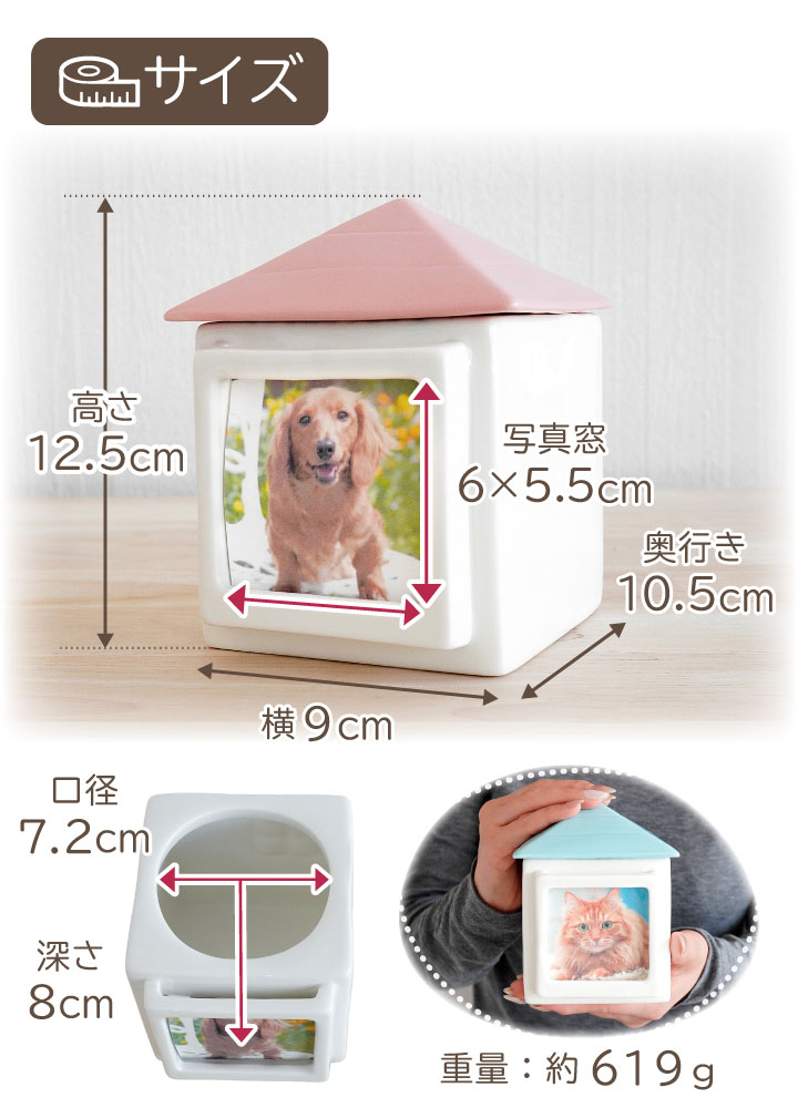 ペット おうち型 家型 ミニ骨壷 ミニ骨壺 M シリコン付 パッキン 3寸 ~ 3.3寸 相当 分骨 子犬 子猫 うさぎ 小動物