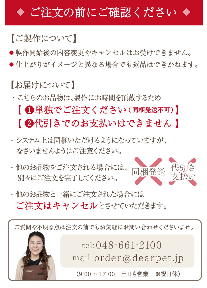 ![]() あの子そのものとしてずっと大事にしていただけますよう、 豊富な種類をご用意しています。 |
