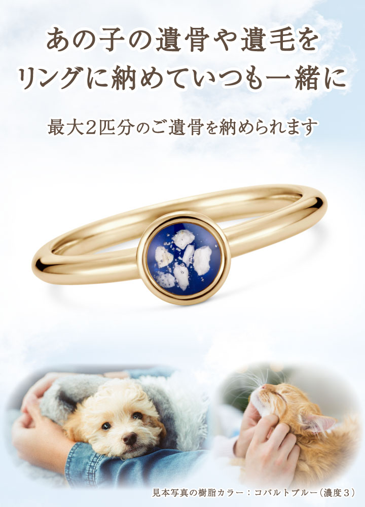 樹脂カラーは自由に選ぶことができ「瞳の色」「好きだったおもちゃの色」「いつも身につけていた首輪の色」など、かけがえない思い出として残すことができます。