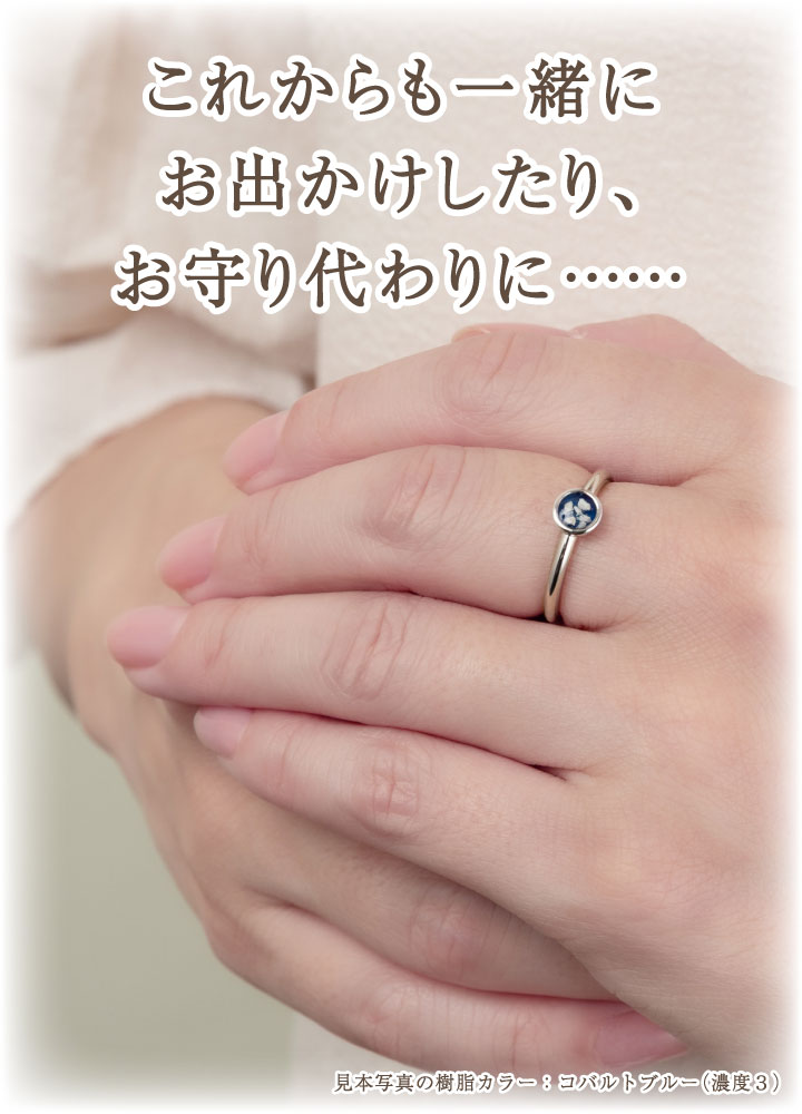 こちらは、ご遺骨を宝石を包み込むように樹脂に封入してお作りするリングです。