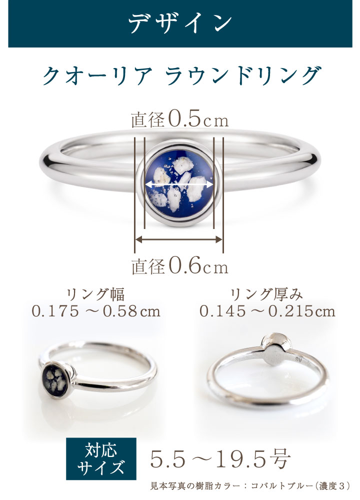リングサイズ:5.5号~19.5号 樹脂部分サイズ:直径0.5~0.6cm リングの幅:0.175cm~0.58cm リングの厚み:0.145cm~0.21cm |