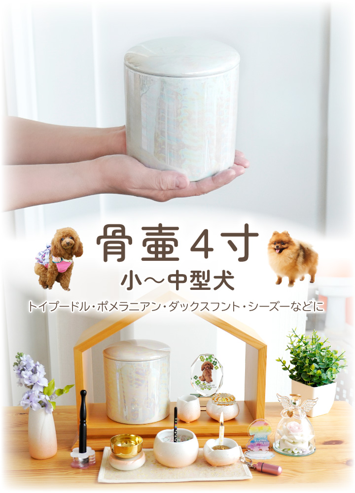 上品な骨壷で、大事なペットちゃんをこれからもずっと大切にご供養なさってくださいね。